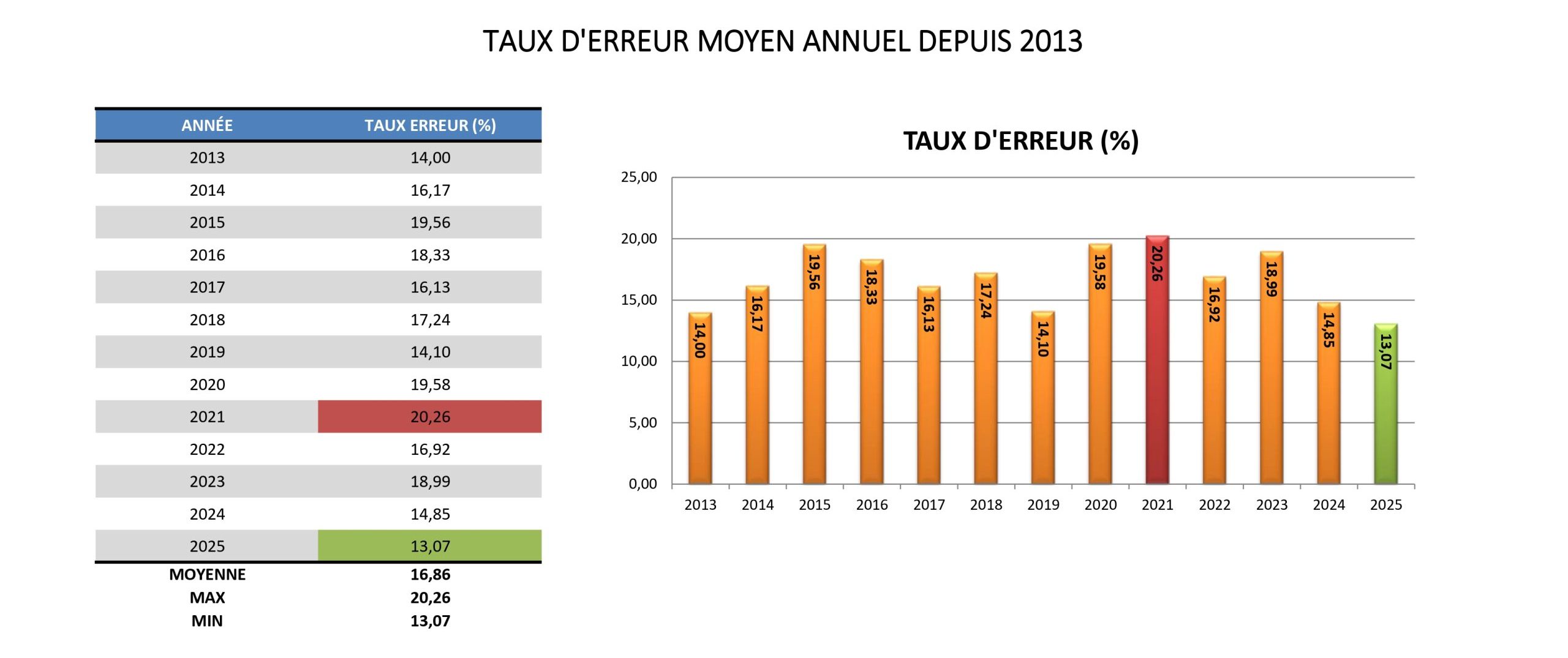 Voici ci-dessous les pourcentages annuels depuis 2️⃣0️⃣1️⃣3️⃣ du taux d’erreur de tri sur notre territoire.